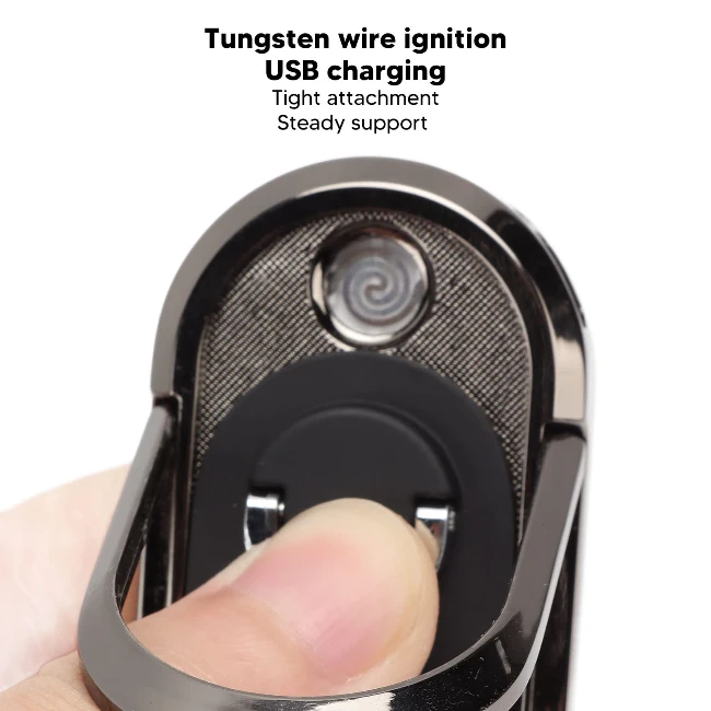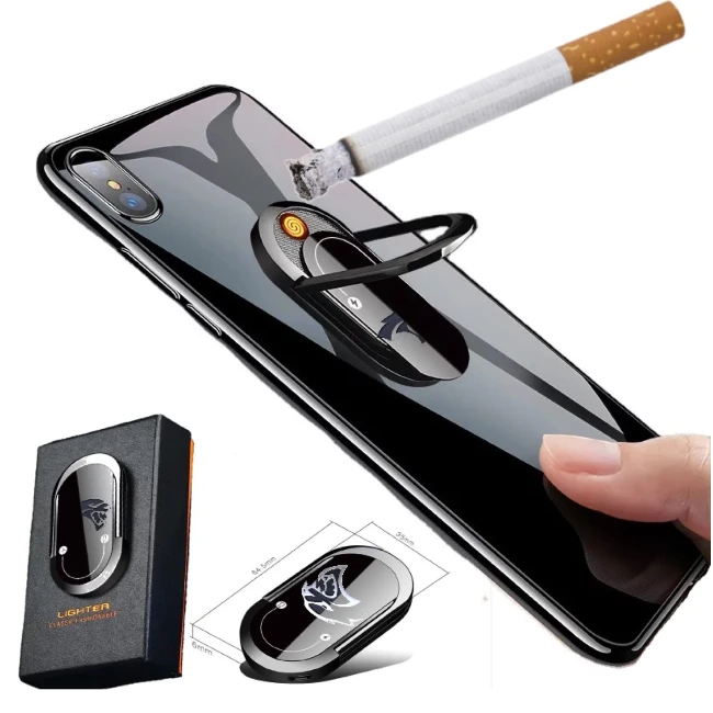 - 360 Degree Rotation mobile Phone Metal Finger Ring Holder with electric rechargeable USB windproof cigarette lighter